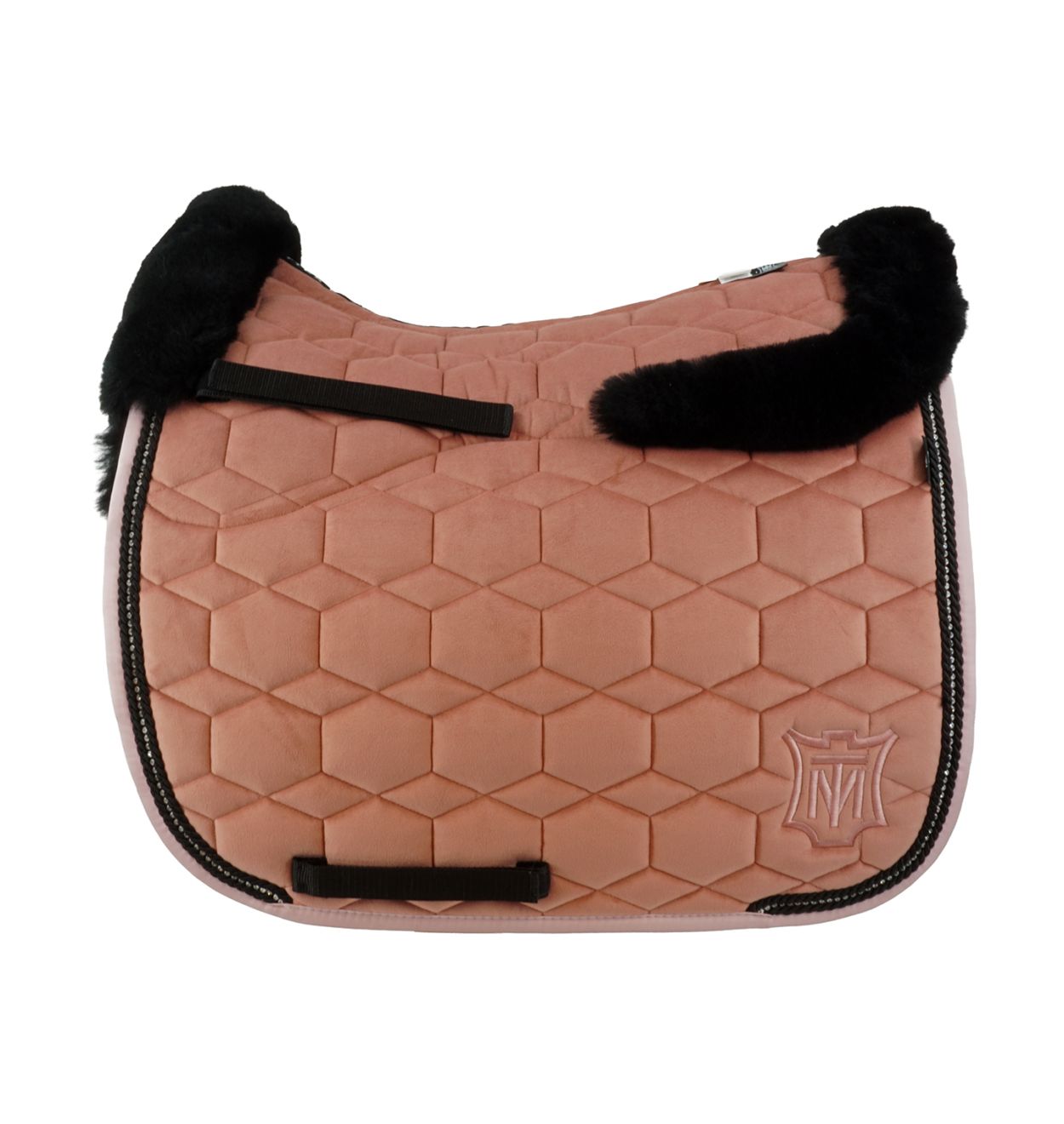 Lammfell Schabracke Dressur Gr.L Samt misty rose/schwarz