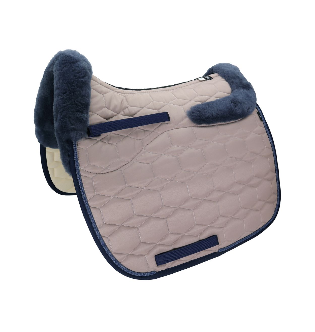 Lammfell Schabracke Dressur Gr.L Glanz cameo/blau
