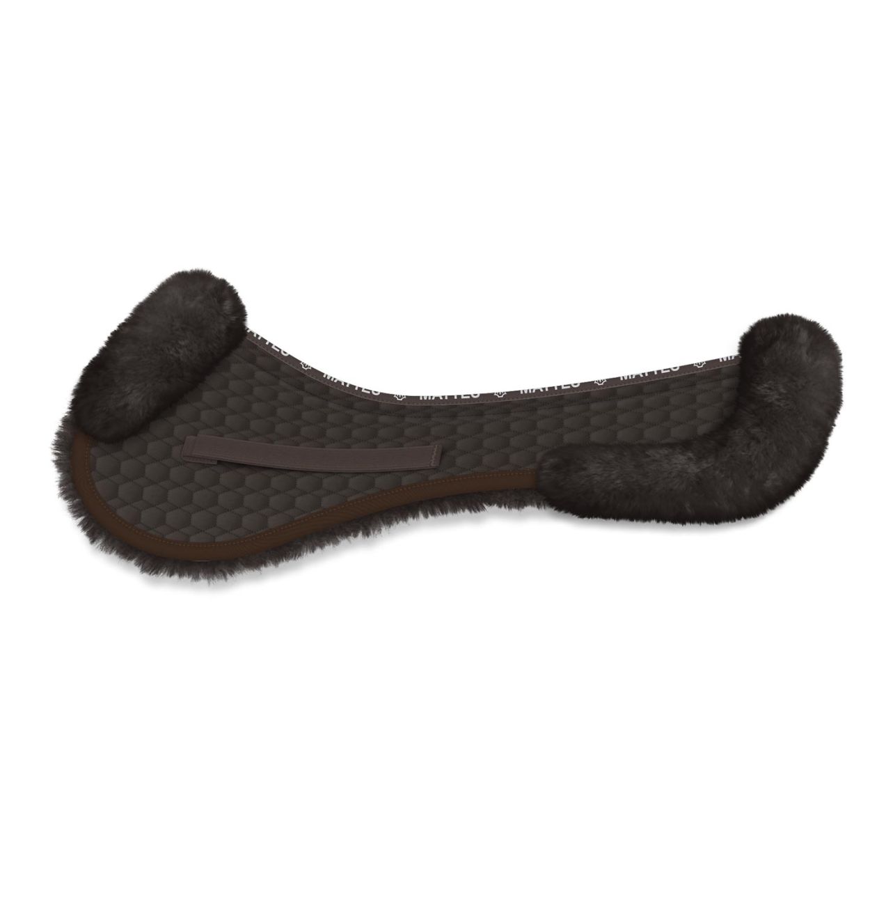 Lammfell Sattelkissen Springen L, braun – mit Rand vorne & hinten, Fell im Sitzbereich
