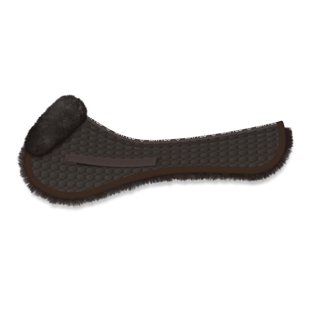 Lammfell Sattelkissen Springen M, braun – mit Rand vorne, Fell im Sitzbereich