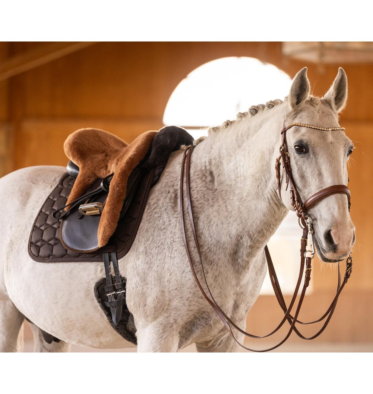 Hochwertige Zalea von MATTES als Lammfellbezug für den Sattel. Umschließt Sitzfläche und Sattelblatt, der Reiter sitzt direkt auf weichem, klimaregulierendem Lammfell. Mit Leder-Reibschutz im Beinbereich für zusätzliche Strapazierfähigkeit. Geeignet für viele englische Dressursättel (nicht für Monoblatt-Sättel).